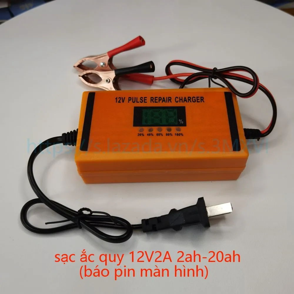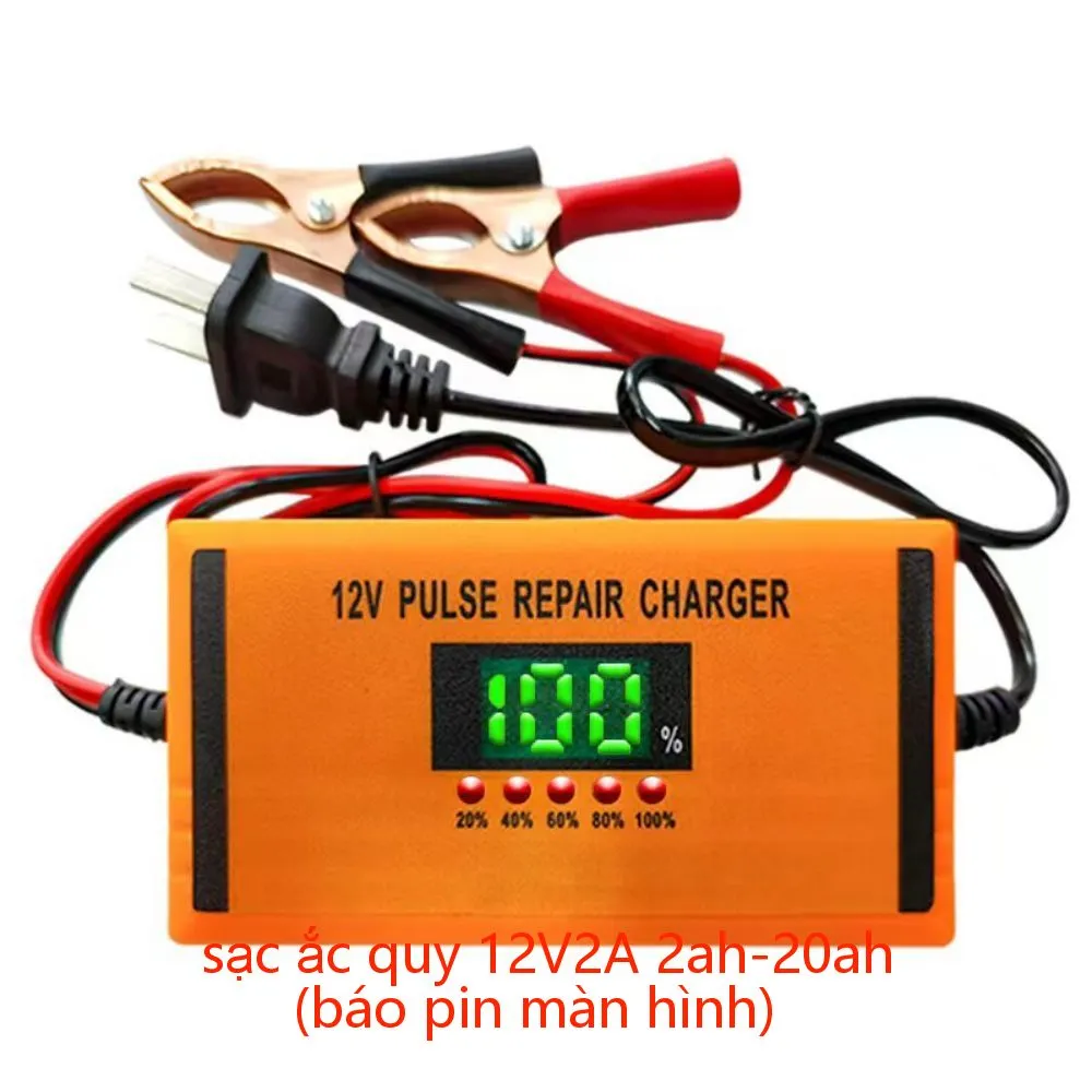 Bộ sạc ắc quy 12V 2A với dung lượng từ 2Ah đến 20Ah và tính năng báo màn hình khi sạc đầy là một thiết bị sạc thông minh và tiện ích để sạc lại ắc quy của xe máy, xe ô tô và các thiết bị khác. Dưới đây là một mô tả tổng quan về tính năng và hoạt động của bộ sạc này: